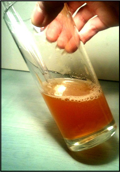 2) Ajoutez l’eau distillée. Vous obtenez un mélange hétérogène, avec en surface l’eau, au fond, le miel.